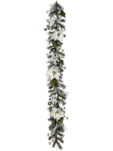 6' Snowed Poinsettia/Holly/ Berry/Pine Garland White Green (pack of 2)
