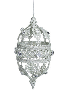 6.5 Glittered Rhinestone Finial Ornament Clear Silver (pack of 2)