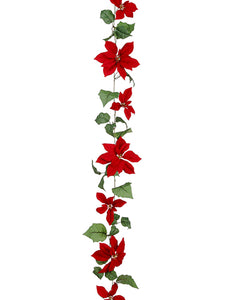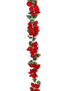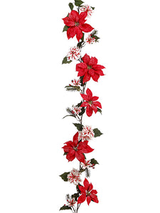 6' Poinsettia/Cedar/Hydrangea Garland Red Green (pack of 4)