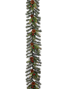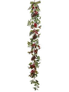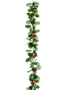6' Holly/Laurel Garland with Cone and Berry Green Red (pack of 12)