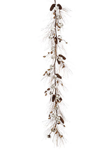 6' Faux Cotton Ball/Cone/Long Needle Pine Garland Brown White (pack of 4)
