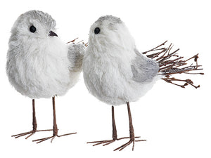 6"Hx5.5"L Glittered Bird (2 ea/set) White Silver (pack of 2)