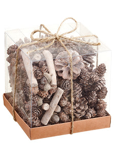 6"Hx6"Wx6"L Acorn/Pine Cone Assortment in Acetate Box Brown Whitewashed (pack of 12)