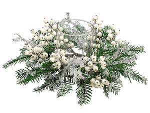 6"Hx17"D Iced Berry/Pine Candle Ring w/3" Glass Candleholder White Green (pack of 2)