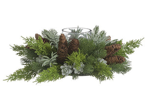 6"Hx18"D Succulent/Pine Cone/Pine Centerpiece With Glass Candleholder Green Gray (pack of 2)