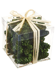 6"Hx6"Wx6"L Assorted Glittered Pine Cone in Acetate Box Green (pack of 6)