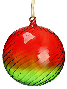 6" Striped Glass Ball Ornament With Gold Ribbon Hanger Red Green (pack of 6)