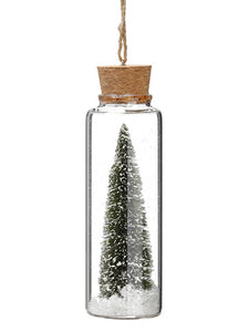 6" Snowed Tree in Glass Tube Ornament Green White (pack of 6)