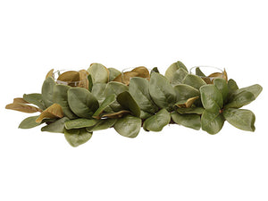 6"Hx14"Wx27"L Magnolia Leaf With Glass Hurricane x3 Candleholder Green (pack of 2)