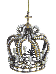 6"Hx4.5"D Rhinestone Crown Ornament Antique Pearl (pack of 4)