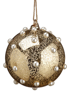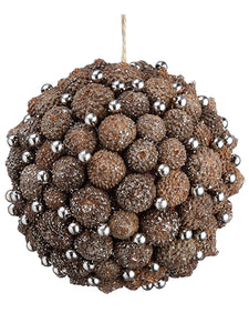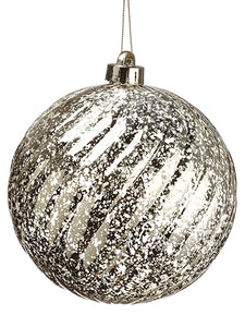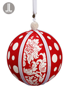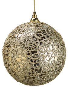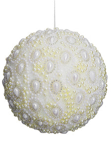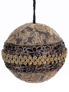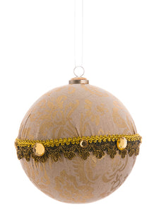 6" Rhinestone Printed Fabric Ball Ornament Beige Silver (pack of 6)