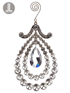 6" Rhinestone Acrylic Drop Ornament Clear Silver (pack of 12)