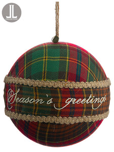 6" Plaid Chalkboard Fabric Ball Ornament Red Black (pack of 2)