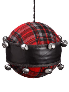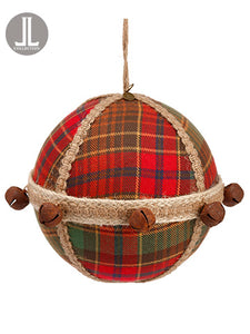 6" Plaid Glass Ball Ornament With Bells Red Green (pack of 6)