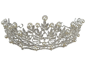 5.9" Pearl/Rhinestone Tiara (2 ea/PVC box) Pearl Silver (pack of 4)