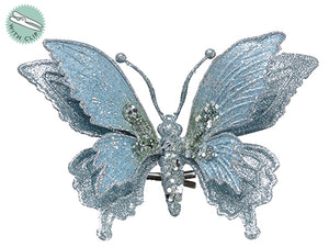 5.5" Glittered/Beaded Butterfly with Clip Silver (pack of 12)