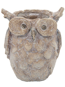 5.5" Owl Candleholder with Glass Brown Whitewashed (pack of 6)