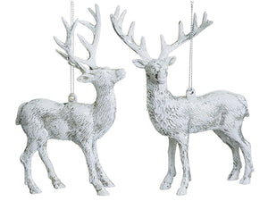 5.75" Glittered Reindeer Ornament (2 Ea/set) White Silver (pack of 12)