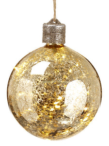 5.5" Battery Operated Glass Ball Ornament With Light Gold (pack of 4)