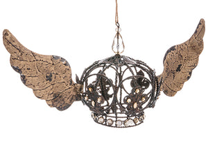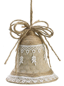 5.25" Burlap Lace Rhinestone Bell Ornament Natural White (pack of 12)