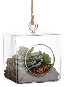 5.1" Iced Echeveria/Pine Cone Glass Ornament Green (pack of 4)