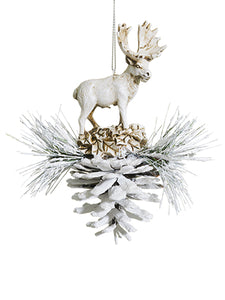 5.25" Moose on Pine Cone Ornament Antique Beige (pack of 6)