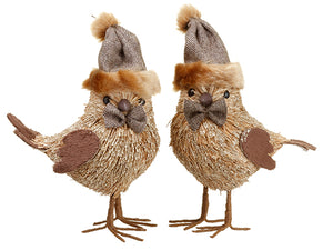 Glittered Sisal Bird (2 ea/set) Glittered Brown (pack of 6)