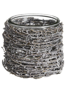 Glittered Twig Candleholder With Glass Brown Silver (pack of 4)