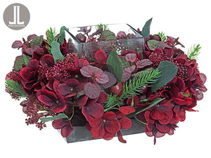 Hydrangea/Pod /Skimmia/Pine Centerpiece With Glass Candleholder Burgun (pack of 2)