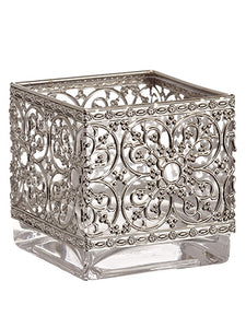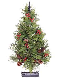 Cedar/Berry/Pine Cone Centerpiece With Glass Candleholder Green Gold (pack of 4)