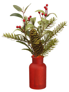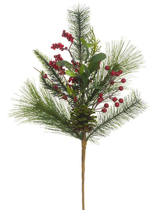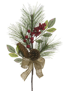Berry/Mistletoe/Pine Spray With Cone Red Green (pack of 12)
