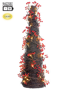 Battery Operated Berry/Twig Cone Topiary With Lights Red Brown (pack of 2)