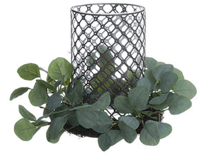 9.75"Hx6"D Eucalyptus With Glass Hurricane Candleholder Green Gray (pack of 4)
