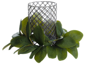 9.75"Hx6"D Magnolia Leaf With Glass Hurrican Candleholder Green (pack of 4)