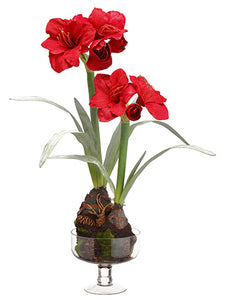 Amaryllis in Glass Vase With Moss/Pine Cone Red (pack of 2)