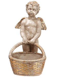 Angel With Silver Wing With Marble Base Brown Silver (pack of 2)