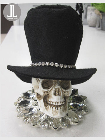 4" Rhinestone Skull Ornament Black Beige (pack of 6)