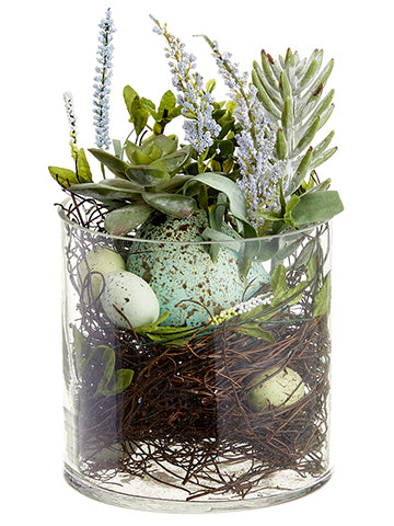 Egg/Succulent Arrangement in Glass Vase Green Turquoise (pack of 1)