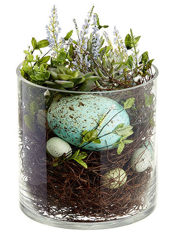 Egg/Succulent Arrangement in Glass Vase Green Turquoise