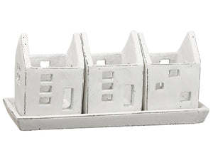 5.5"Hx4.5"Wx11.25"L House Tealight Candleholder x3 With Tray Antique White (pack of 1)