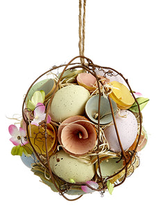 5.5" Egg/Wood Chip Flower/ Straw Ball Ornament Mix (pack of 4)