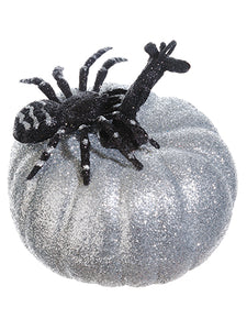 5"Hx5.5"D Glittered Pumpkin With Spider Silver Black (pack of 12)