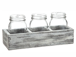 5"Hx4"Wx11.7"L Glass Vase x3 in Wood Box Clear Whitewashed (pack of 6)
