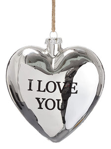 5" I Love You Glass Heart Ornament Antique Silver (pack of 6)