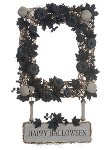36" Pumpkin/Skull Happy Halloween Wreath Black Gray (pack of 1)