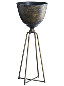 39.75"Hx16"D Metal Planter on Stand Antique Gray (pack of 1)