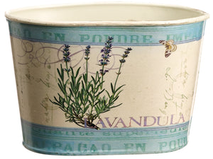 3.75"Hx3.75"Wx6"L Tin Lavender Decoupage Pot Cream Blue (pack of 12)