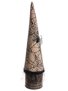 21" Halloween Cone Topiary in Tin Pot w/Spider Black Beige (pack of 2)