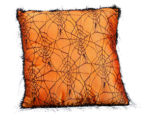 16"Wx16"L Spider Web Linen Pillow Black Orange (pack of 6)