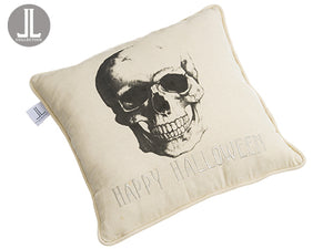 16"Wx16"L Happy Halloween Skull Pillow Black Beige (pack of 6)
